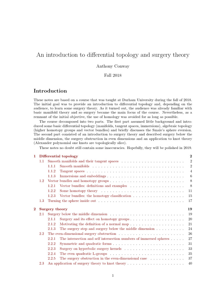 basic manifold theory and so surgery became the main focus of the course. Nevertheless, as a