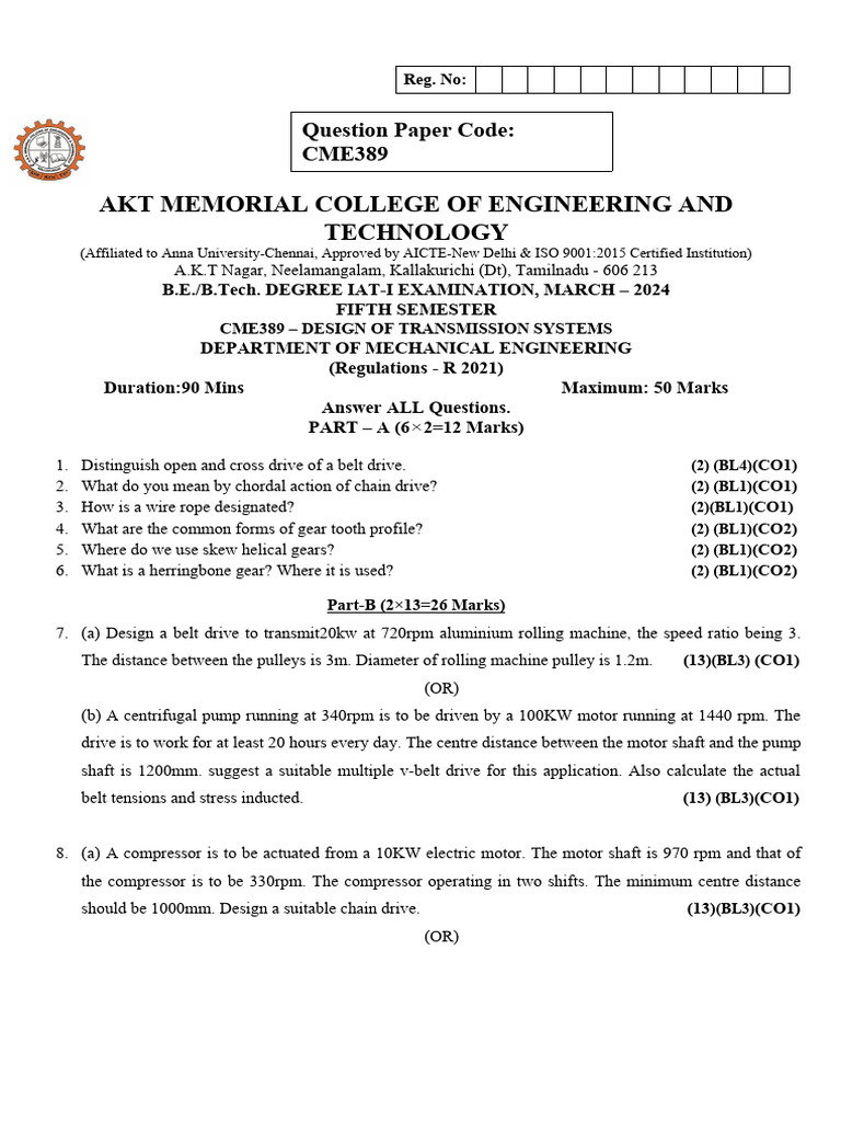 CME389 – DESIGN OF TRANSMISSION SYSTEMS