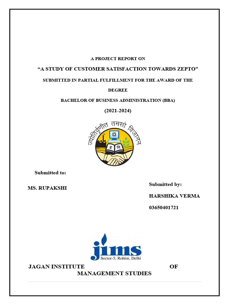 “A STUDY OF CUSTOMER SATISFACTION TOWARDS ZEPTO”