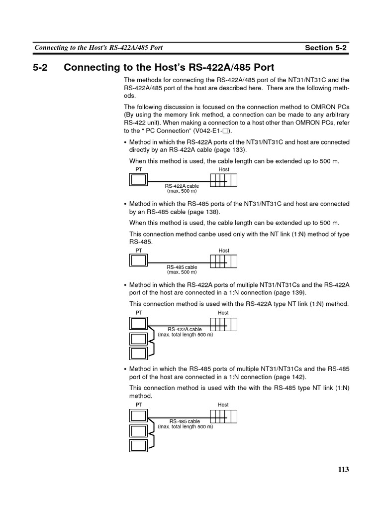 Connecting to the Host’s RS-422A/485 Port Section 5-2