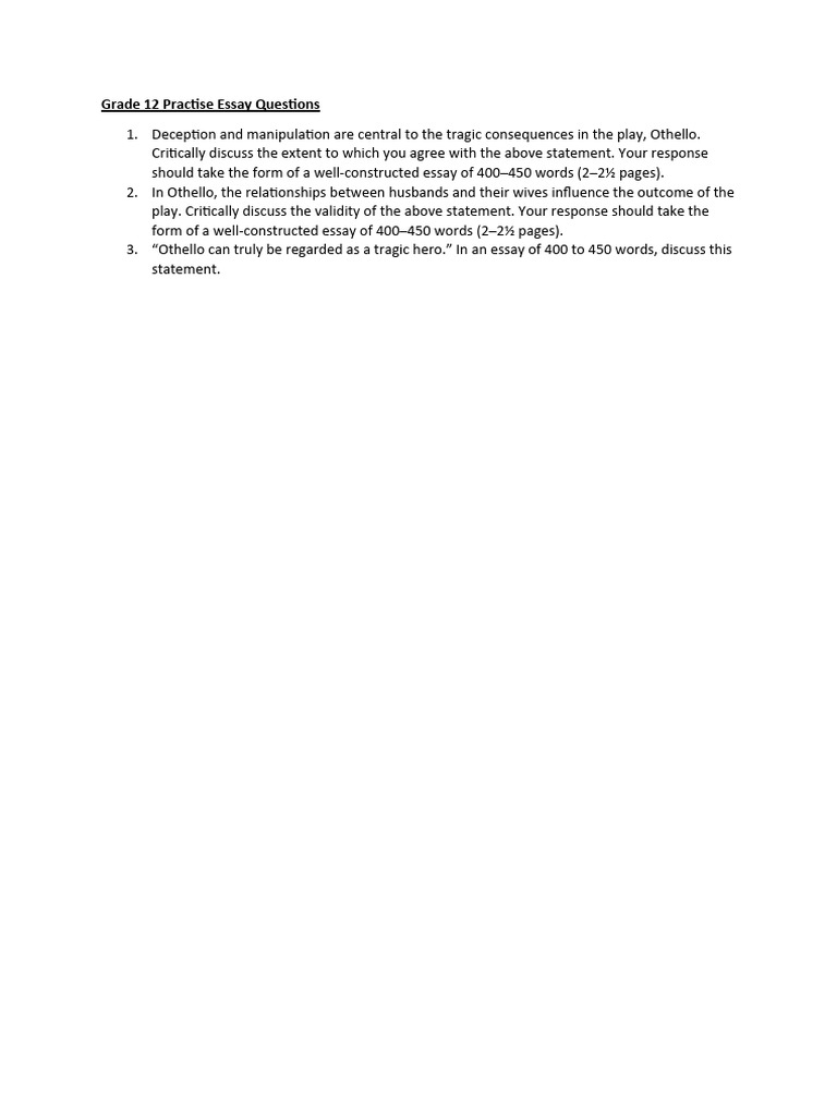 Grade 12 Practise Essay Questions