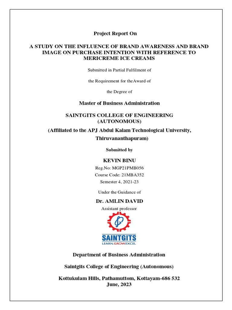 of Business Administration,, Saintgits College of Engineering (Autonomous), submitted in