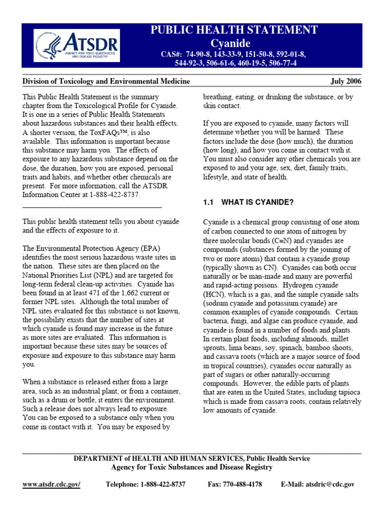 is about 1–3 years. Most cyanide in surface water 1.3 HOW MIGHT I BE EXPOSED TO