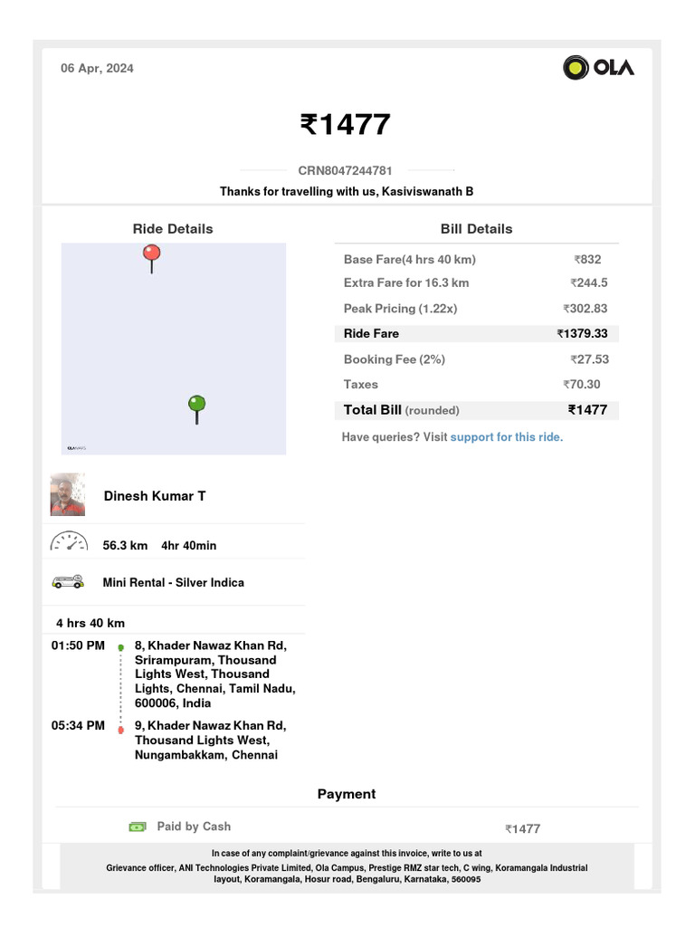 Grievance officer, ANI Technologies Private Limited, Ola Campus, Prestige RMZ star tech, C wing, Koramangala Industrial