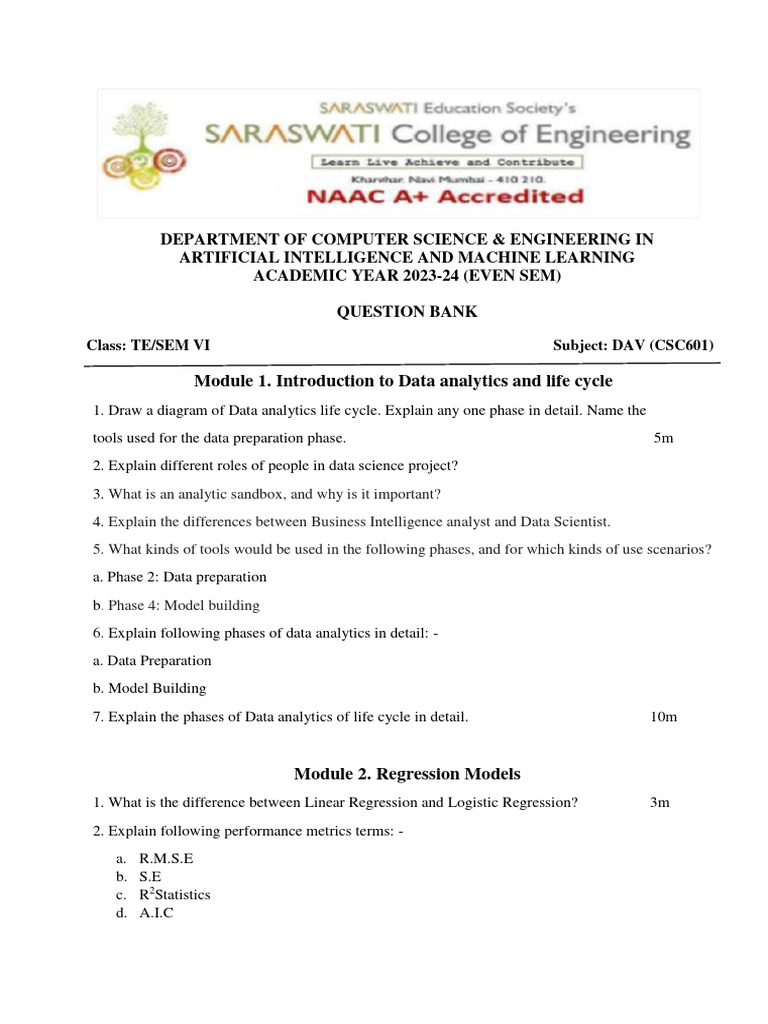 Class: TE/SEM VI Subject: DAV (CSC601)