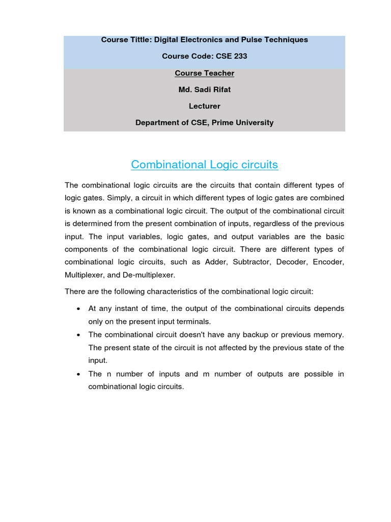 Combinational Logic circuits
