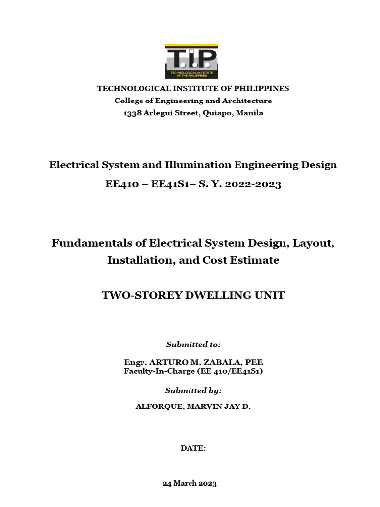 Fundamentals of Electrical System Design, Layout, Installation, and Cost Estimate of Two Storey Dwelling Unit