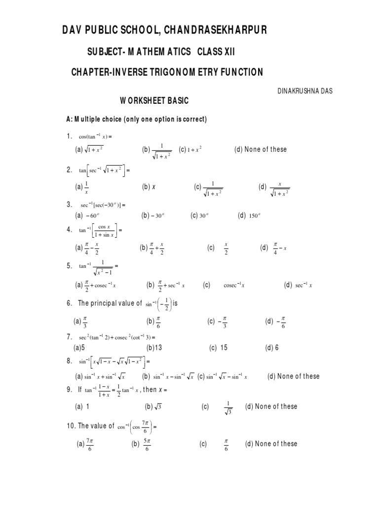 CHAPTER-INVERSE TRIGONOMETRY FUNCTION