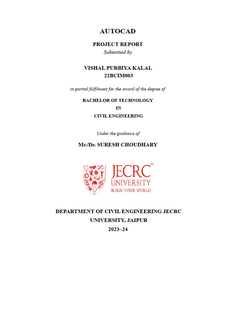This is to certify that the project report entitled “AUTOCAD” is a bonafide record of