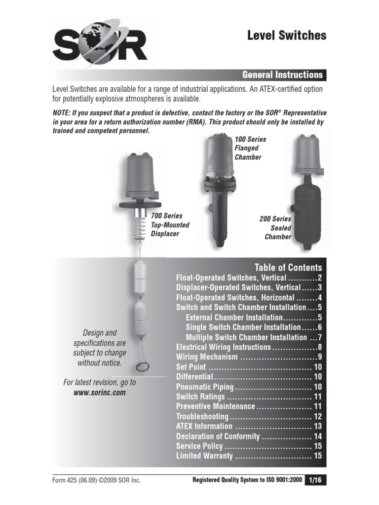 16/16 Registered Quality System to ISO 9001:2000 Form 425 (06.09) ©2009 SOR Inc.
