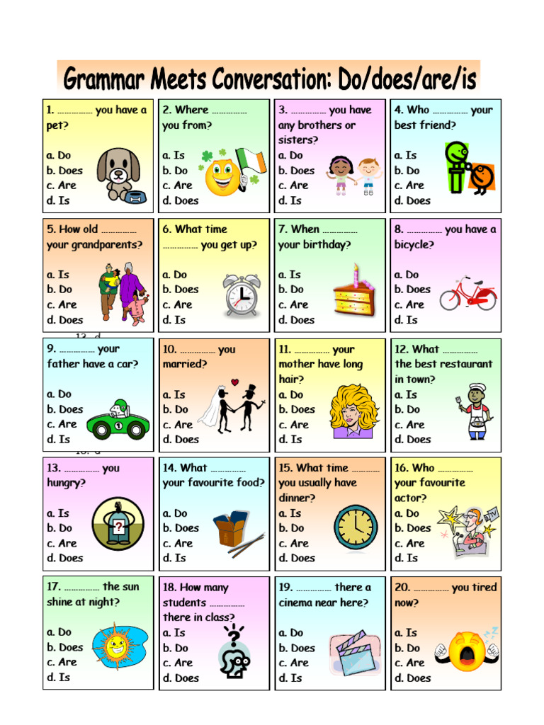3. ayou have a 2. Where …………… 3. …………… you have 4. Who …………… your