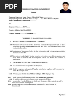 employee working welfare, safety, and health, payment details, consequences of contract termination, and
