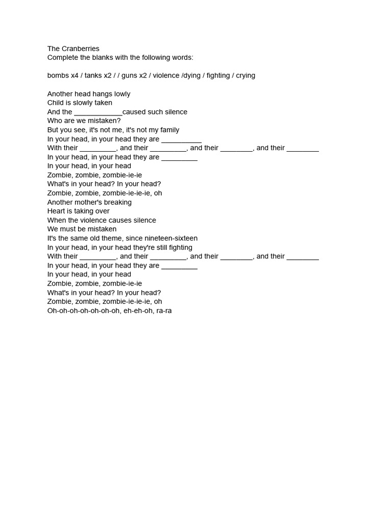 Zombie, zombie, zombie-ie-ie-ie, oh