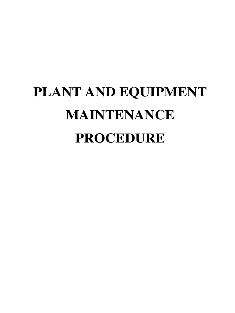5.2.1 The general process cycle for the maintenance of all plant and equipment through