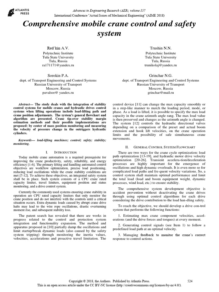 Engineering, Part of the Lecture Notes in Electrical Engineering book [28] A.V. Chernov, A.V. Red’kin and P.A Sorokin, Method of Crane