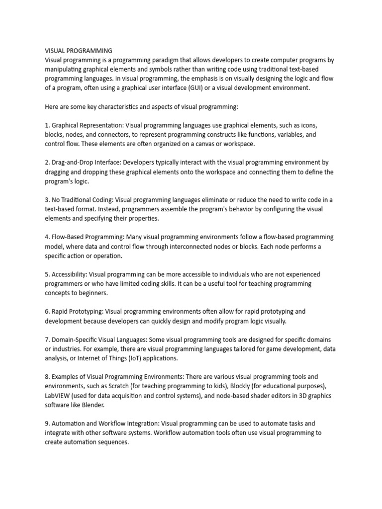 8. Examples of Visual Programming Environments: There are various visual programming tools and