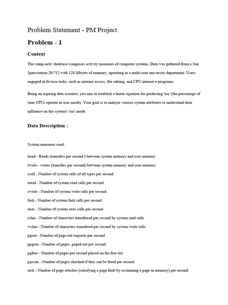 time CPUs operate in user mode). Your goal is to analyze various system attributes to understand their