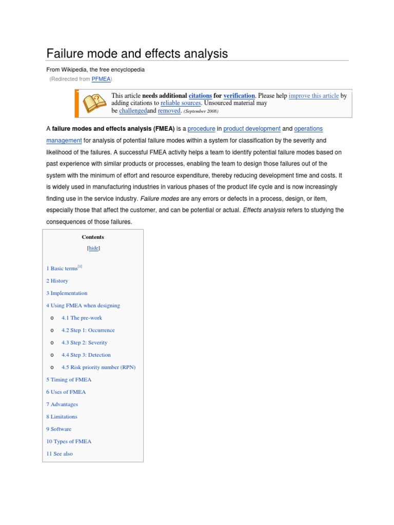 1 Basic terms[1] 2 History 3 Implementation 4 Using FMEA when designing