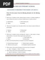 CHERCHER SECONDARY SCHOOL GEOGRAPHY WORKSHEET 3 FOR GRADE 12 IN 2023