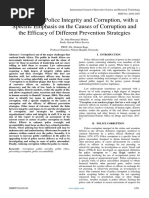 the experienced investigators. The hearings of the department for which the regulation were broken are collected and provided to the experienced or prosecuting officers. This is done to reduce the time taken by the supervisors to identify the problem and then take any corrective measure. It also conveys a strong message of no tolerance for any form of misconduct by the police. Conclusion: It is impossible to completely eliminate police corruption but it is necessary to design such mechanisms that can detect corrupt acts and support a culture of honesty and truthfulness in the police department. The cost of police corruption is much more than the rewards. It undermines the trust of the general public and encourages criminal activities such as human trafficking, involvement with terrorists and other subversive groups. The enforcement of anti-corruption laws and investigation of all such cases is very essential in this regard. The mission of policing is to provide security and maintain peace and harmony at all times. The monetary conditions of police officers should be sufficient enough to provide their working and living standards. Reliable salaries should be given along with other health and educational benefits to train the officers. One important factor that must be kept in mind that lack of realism can lead to the cycle of corruption all over again. After attaining success in combating corruption, agencies should not be complacent about corruption as it takes no time to return it with the same force in the future. There are two watchwords for the police administration i.e. Vigilance and realism. All the measures discussed in this report are not full proof strategies and require careful consideration to get the desired effect. One important factor is equal treatment to all. If the big fish (rich) are protected from the prosecution of corruption then this will lead to the failure of anti-corruption strategies. A periodic review to identify the loopholes is also mandatory.