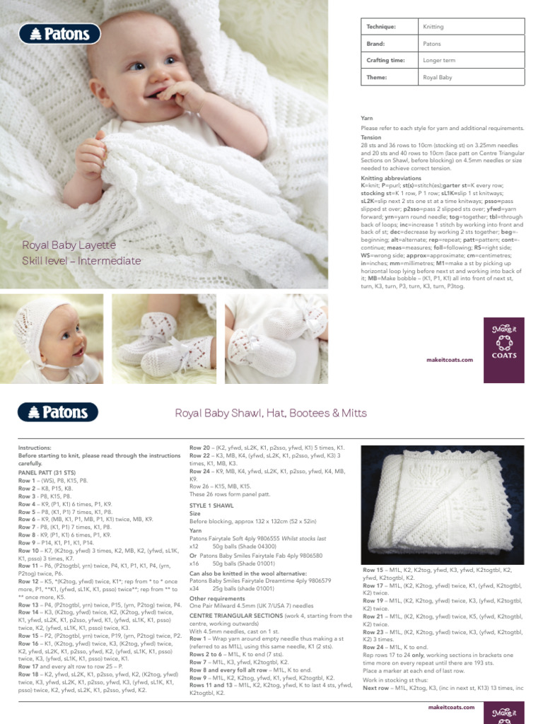 Royal Baby Shawl, Hat, Bootees & Mitts