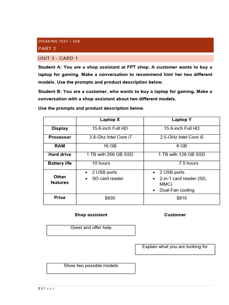 Student A: You are a shop assistant at FPT shop. A customer wants to buy a