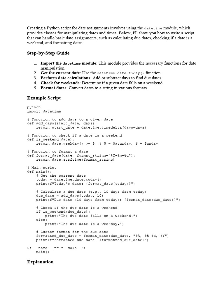 Save the script in a file, for example, date_assignments.py, and run it using a Python