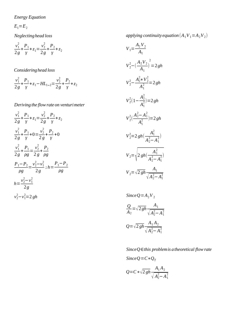 v 2−v 1=2 gh SinceQ=A 2 V 2