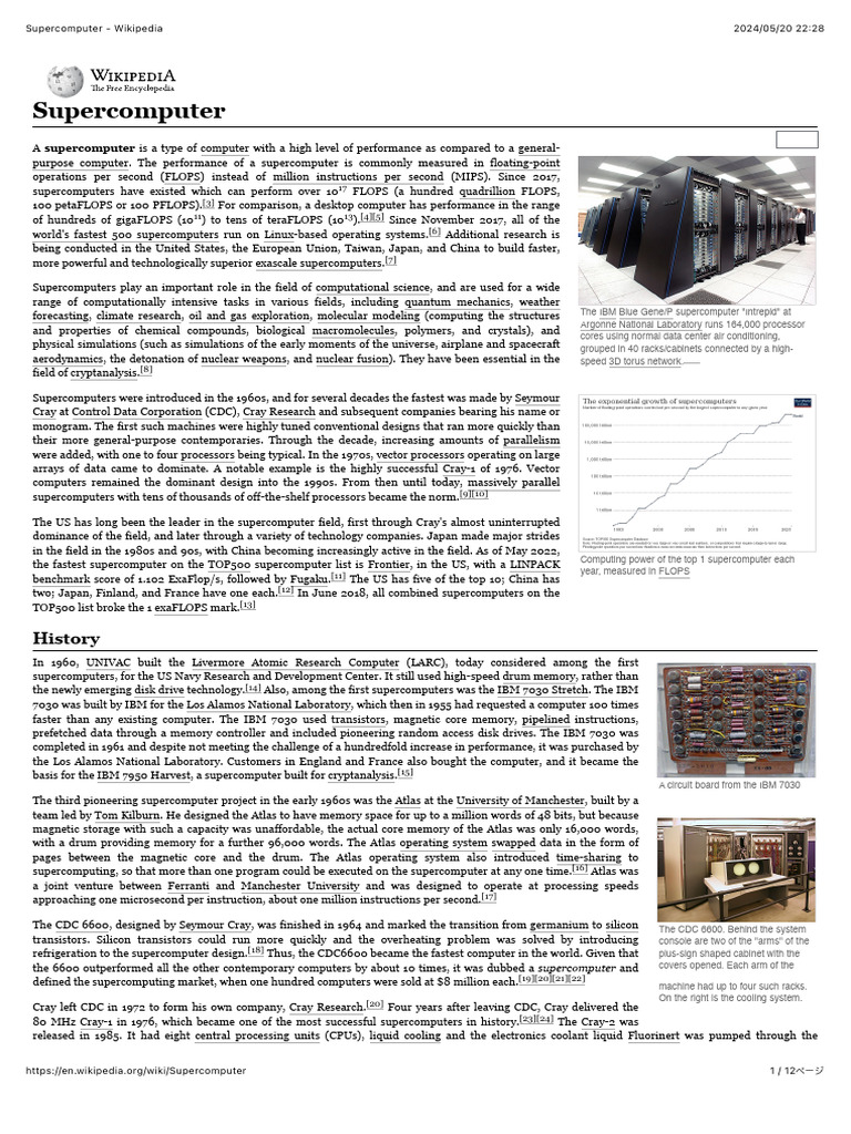 https://en.wikipedia.org/wiki/Supercomputer 1 / 12ページ