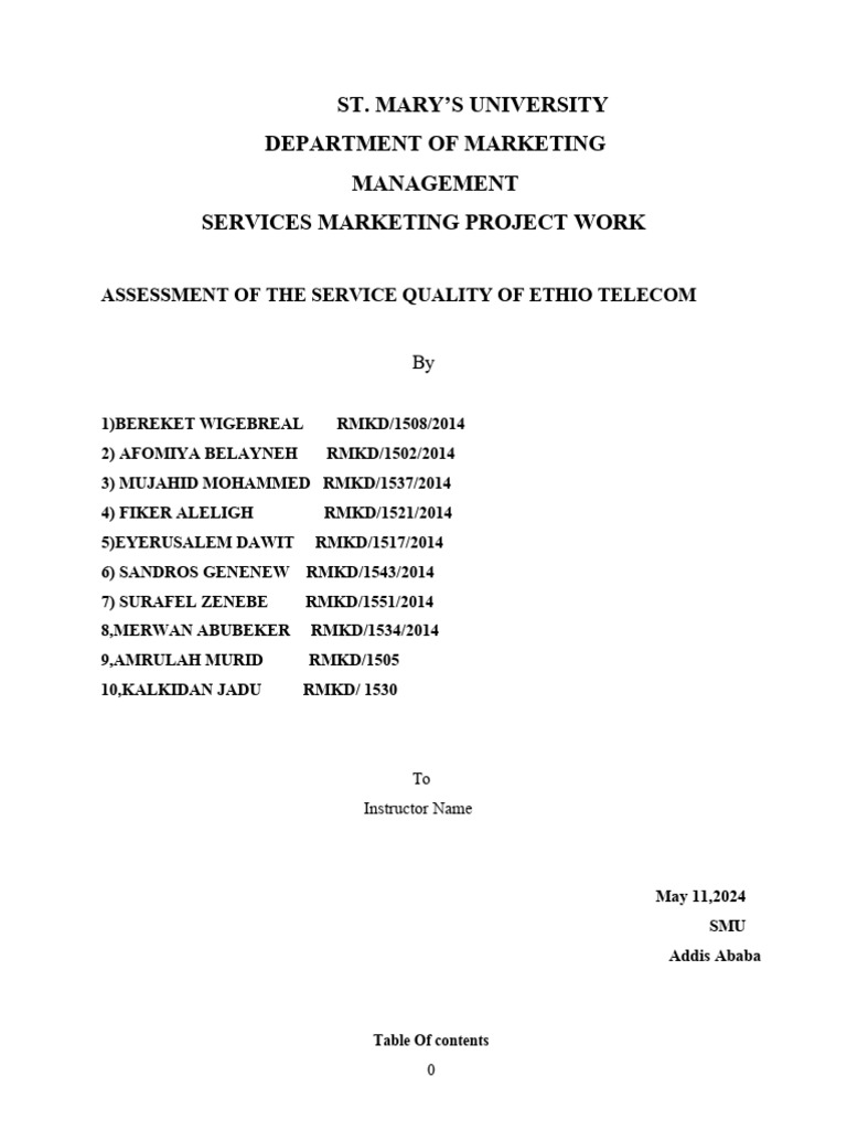 Peoject title :Service Quality at Ethio Telecom