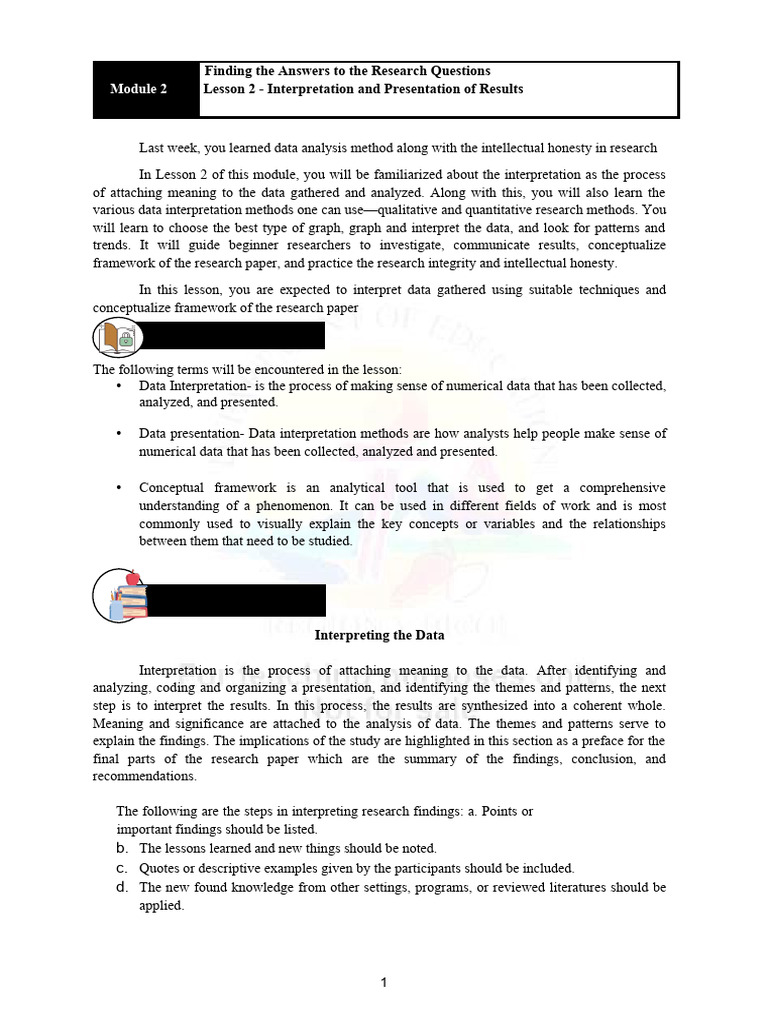 In this lesson, you are expected to interpret data gathered using suitable techniques and