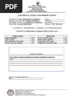 • Observations: detailing behavioral patterns that occur within an observation group. These