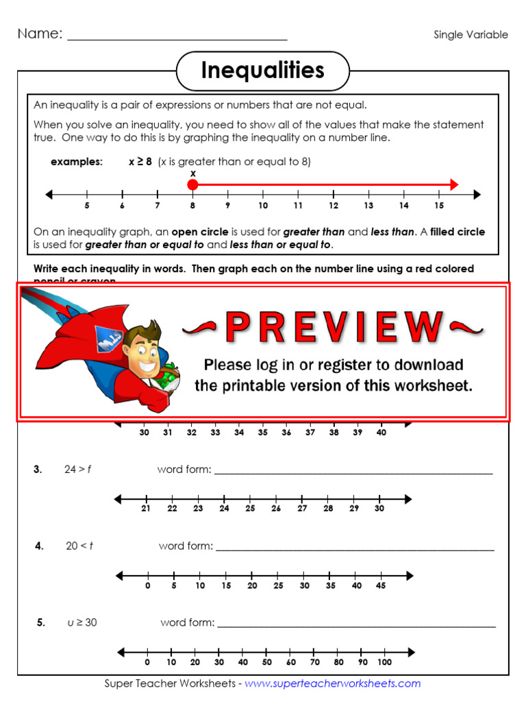 Graph each inequality on the number line using a red colored pencil or crayon.
