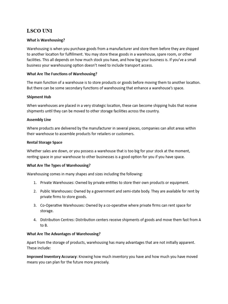 warehousing options.