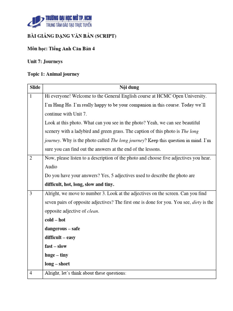 1 Hi everyone! Welcome to the General English course at HCMC Open University.