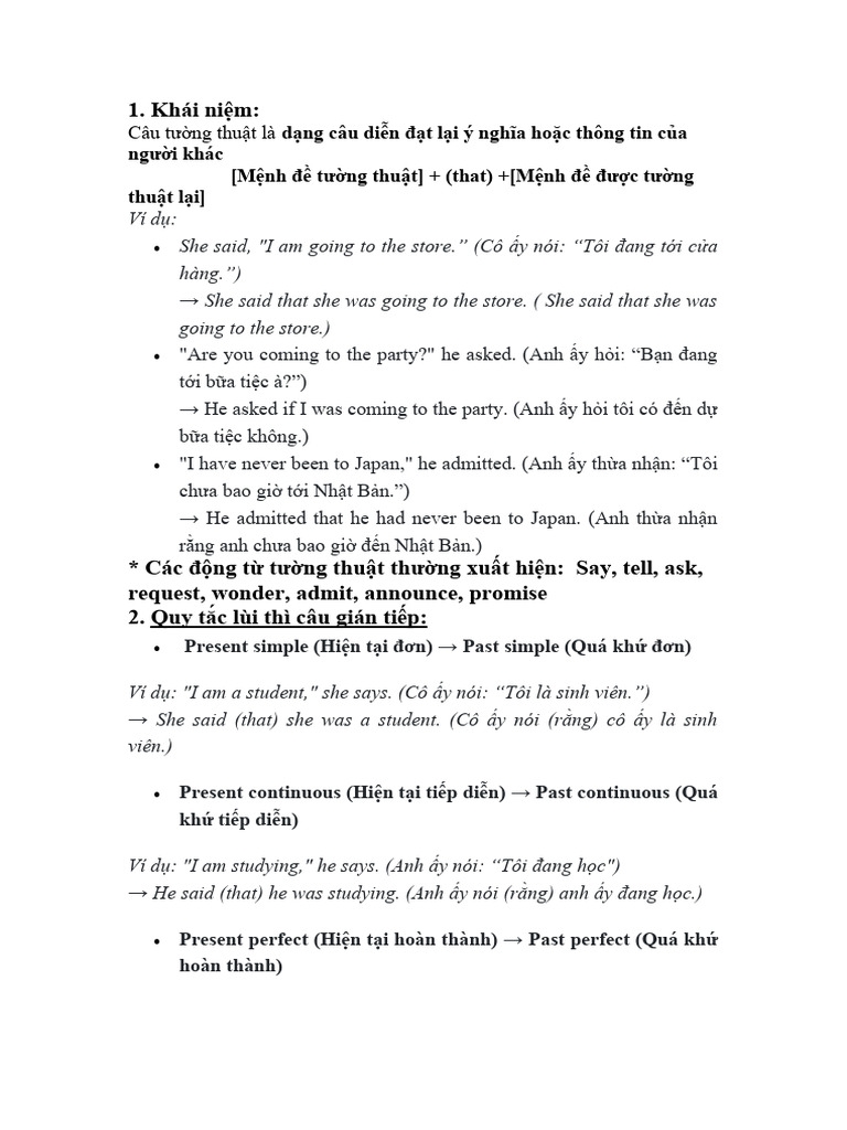 2. Quy tắc lùi thì câu gián tiếp: