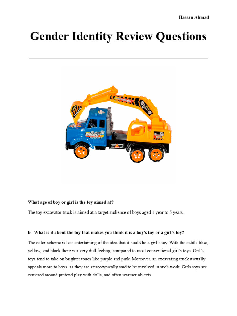 The toy excavator truck reinforced gender stereotypes in children due to its alignment and