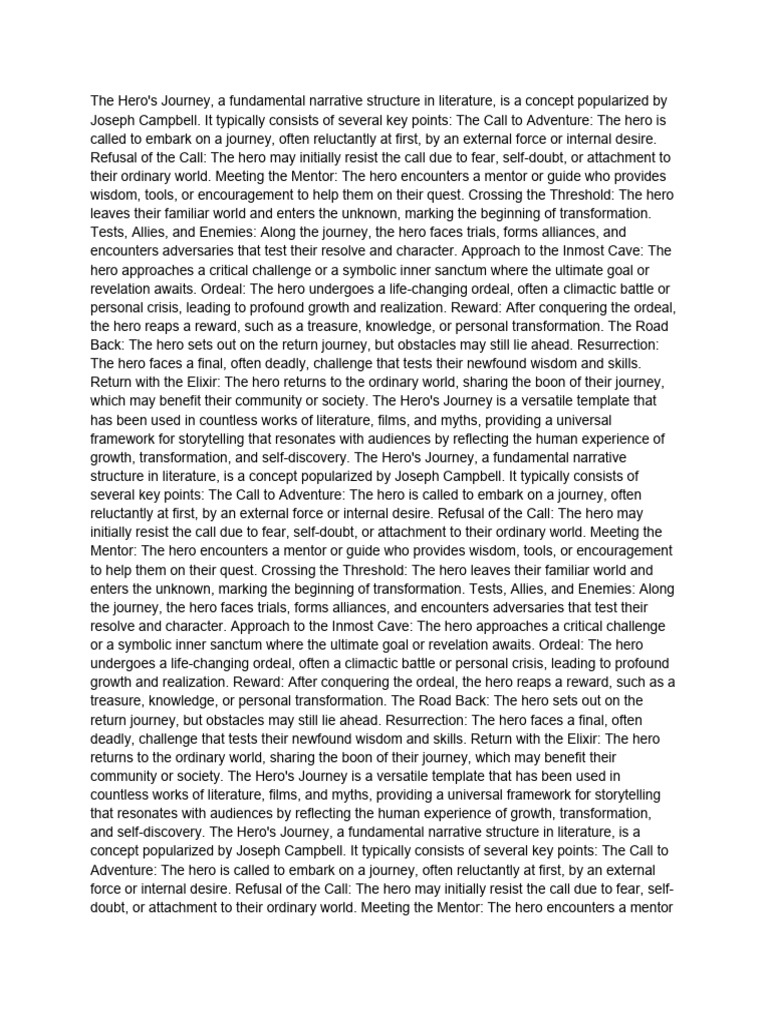 and self-discovery. The Hero's Journey, a fundamental narrative structure in literature, is a