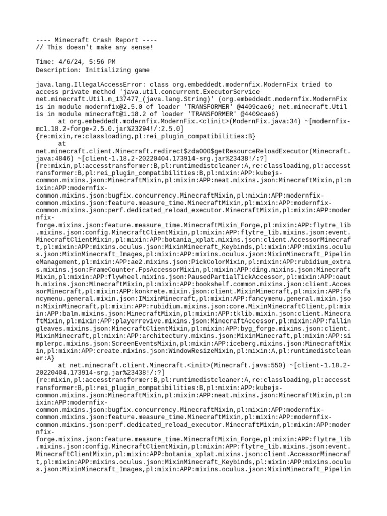 java.lang.IllegalAccessError: class org.embeddedt.modernfix.ModernFix tried to