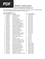 The University of Nigeria Nsukka hereby offers Provisional Admission to the following PUTME