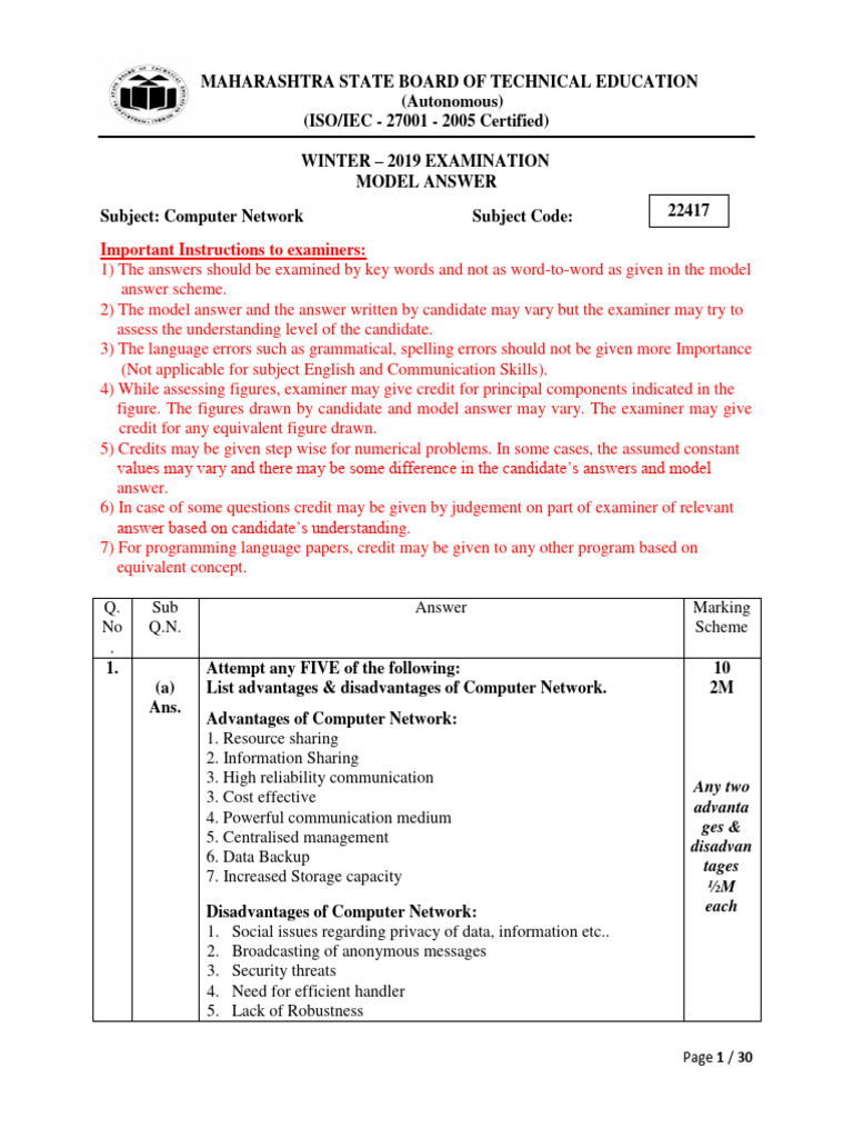 Subject: Computer Network Subject Code: 22417