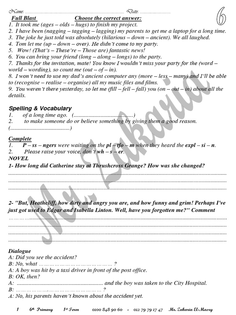 1 6th Primary 1st Term 0100 848 90 60 - 012 79 79 17 47 Mr. Zakaria El-Masry