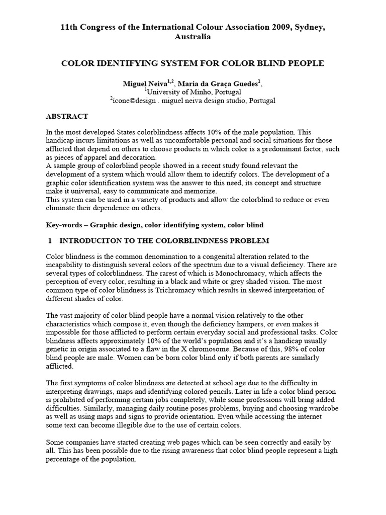 1 INTRODUCITON TO THE COLORBLINDNESS PROBLEM