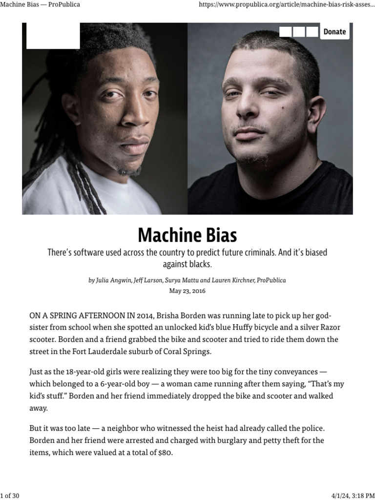 by Julia Angwin, Je� Larson, Surya Mattu and Lauren Kirchner, ProPublica