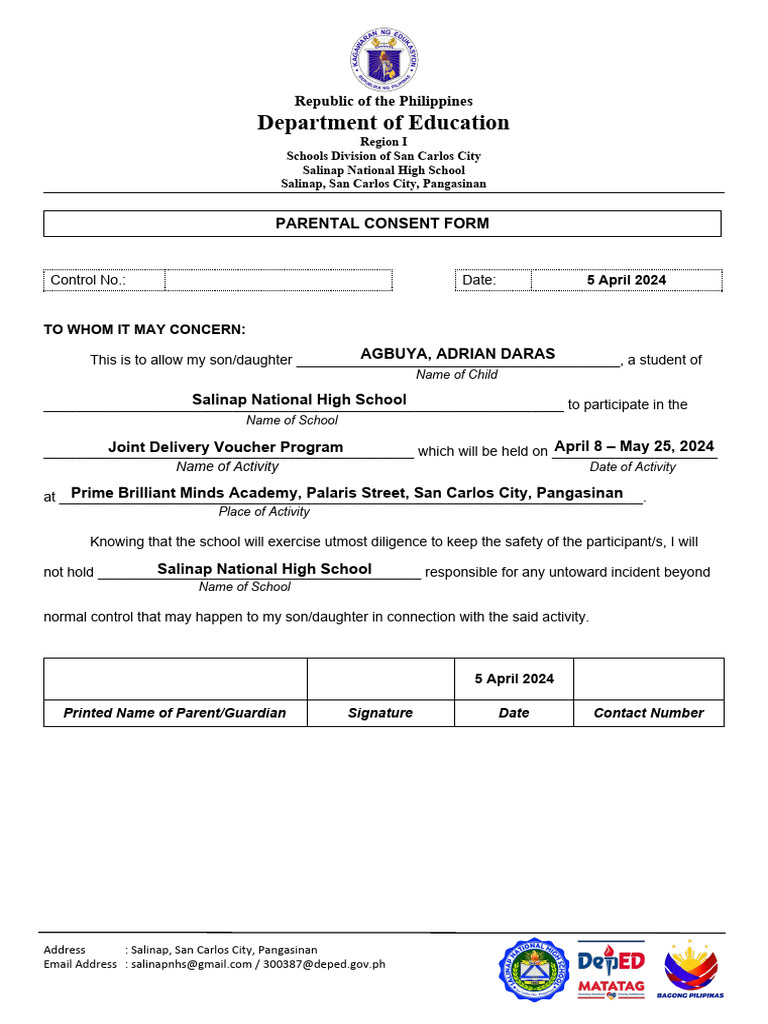 PARENTAL CONSENT FORM