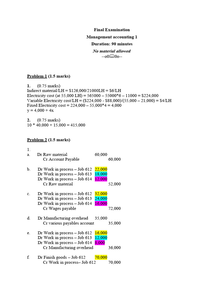 + COGS (Job 612) = 1000 – 225- 337.5 = 437.5