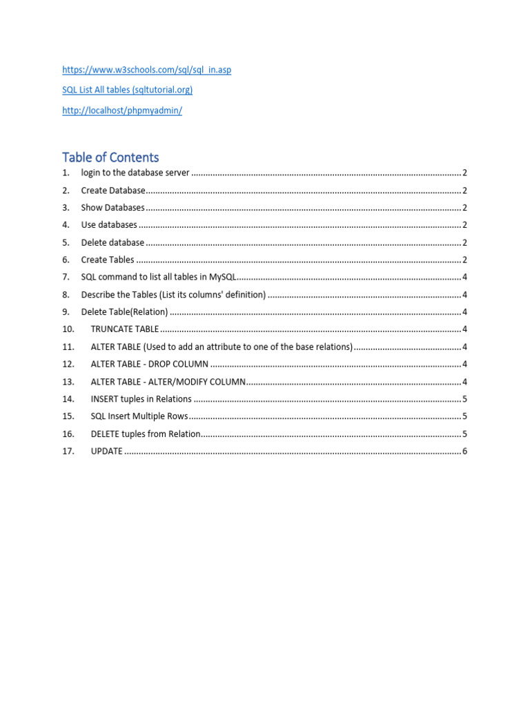 7. SQL command to list all tables in MySQL .............................................................................................. 4