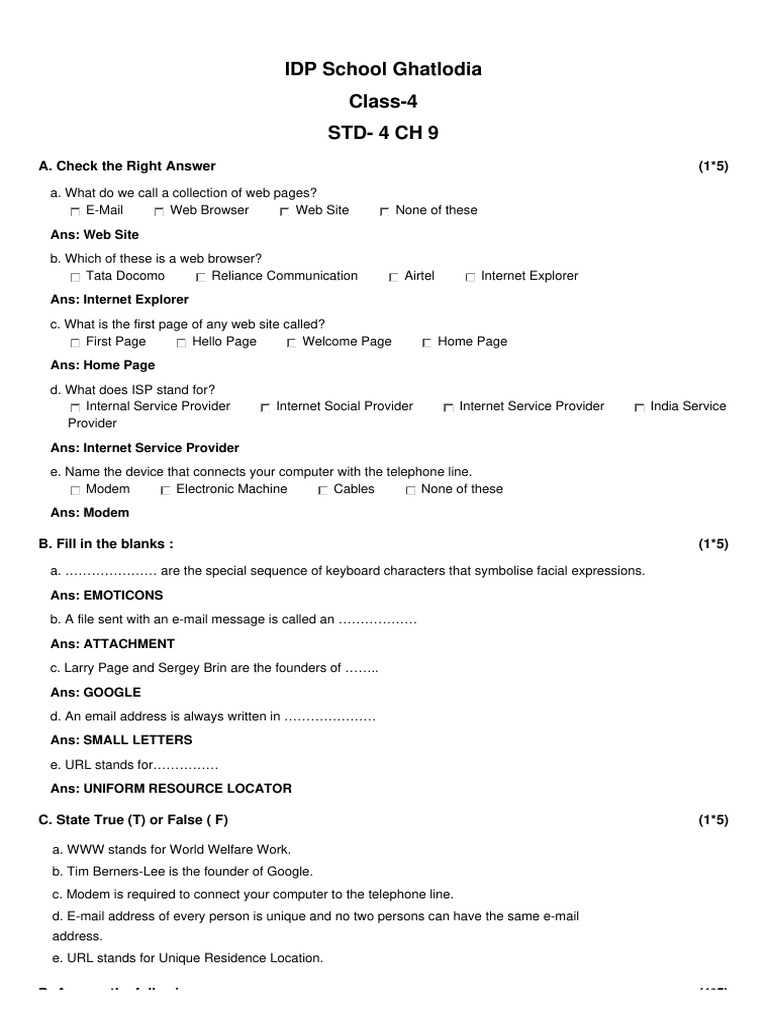 A. Check the Right Answer (1*5)