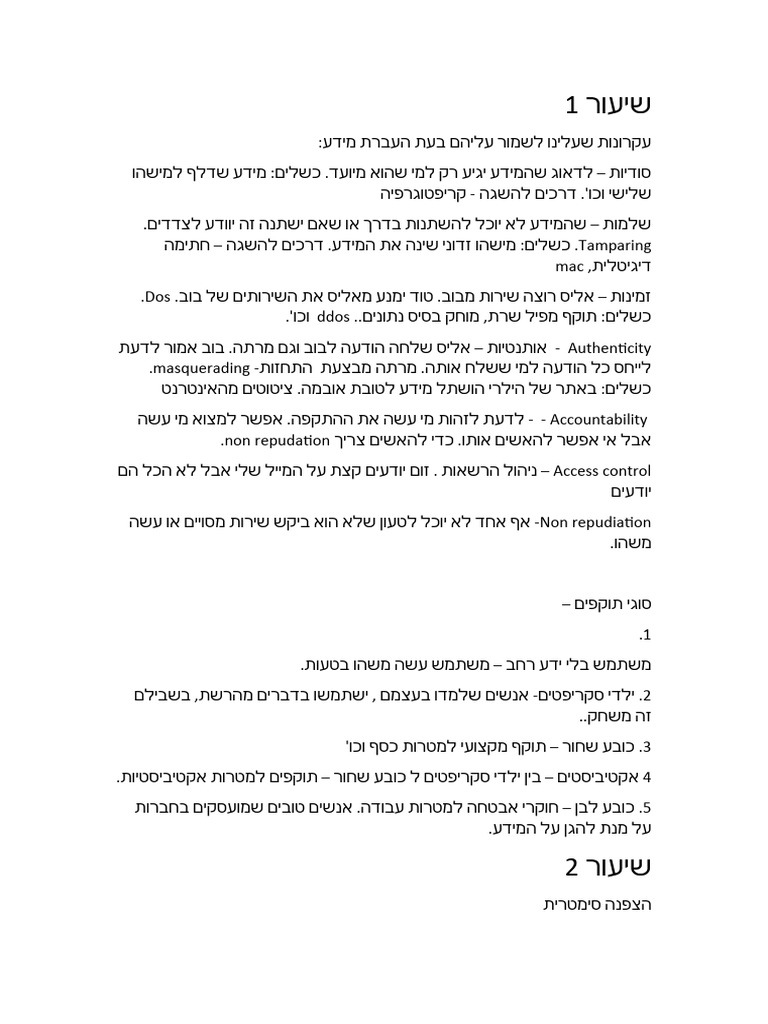 - - Confidentialityהצפנה ,החלפת מפתח,