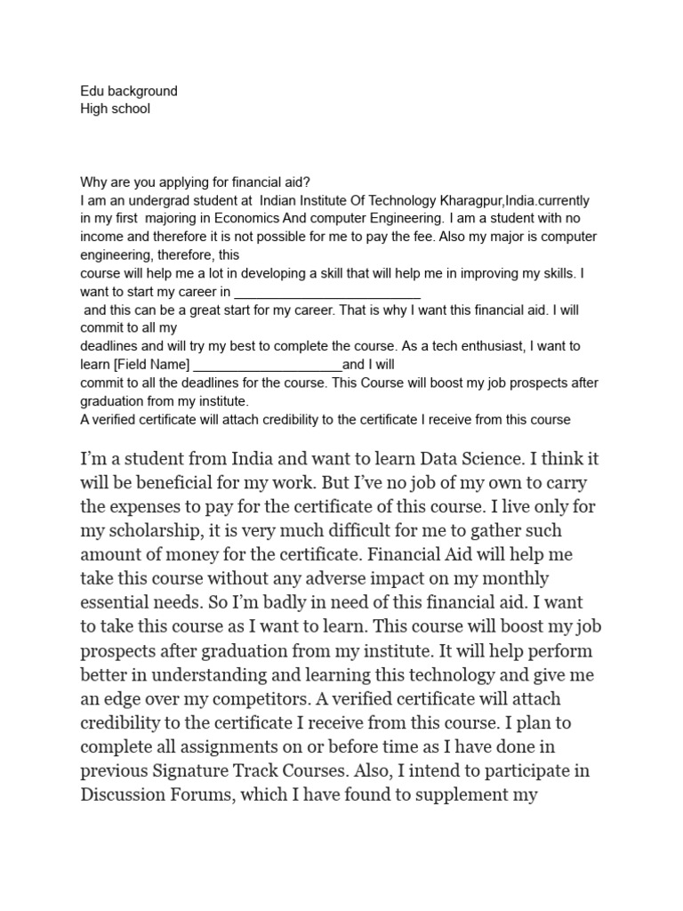 and this can be a great start for my career. That is why I want this financial aid. I will